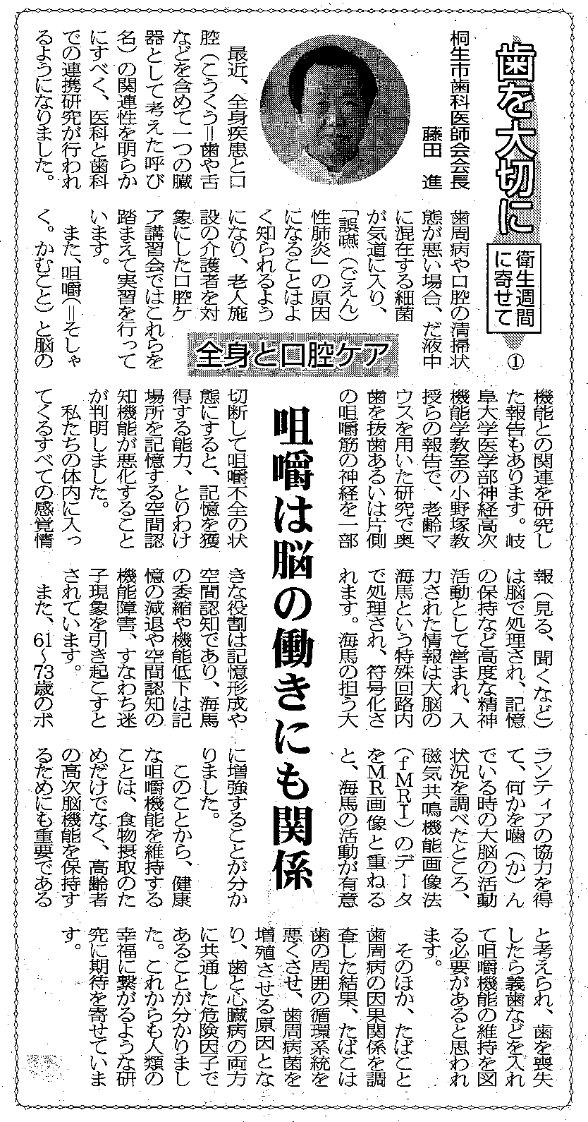 | 1.前進と口腔ケア 咀嚼は脳の働きにも関係 | |