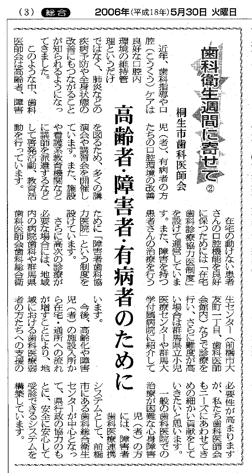 ― 桐生市歯科医師会は住民のみなさんのお口の健康を守ります ―