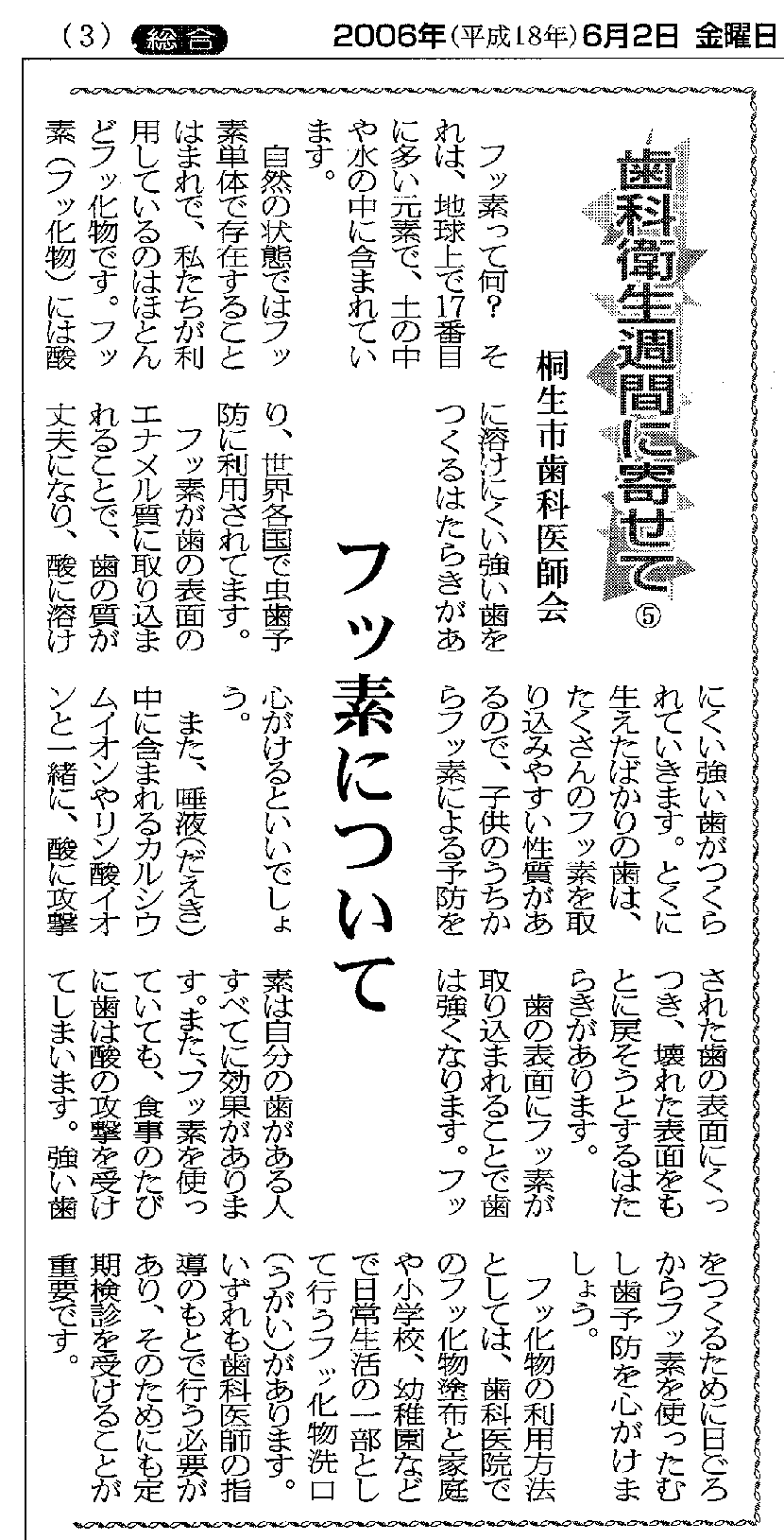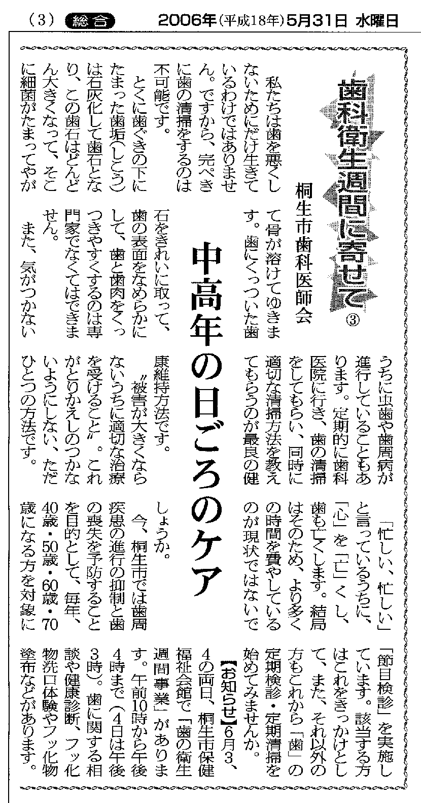平成十七年度の桐生タイムス掲載の記事です。 |